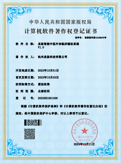 杭州泉脉科技有限公司是一家以自主研发的AI中医算法和中医硬件设备为基础,构建全域中医智能软硬件解决方案的科技企业,公司被评为国家高新技术企业、浙江省科技型中小企业、杭州市雏鹰计划企业。公司的AI中医算法获得了杭州市科技局举办的第2届青年算法设计大赛铜奖。